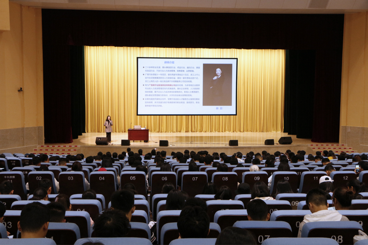 12月12日.为助力pp电子学子了解就业现状,提高就业意识,增强求职及适应能力,招生就业处特邀广西南宁远哲信息咨询有限公司副总经理林欣携手机械与船舶海洋工程学院在学校礼堂举办“大学生提前职业化”讲座。近千名来自各专业的学生参加了讲座。会上,林欣副总经理从2019年近三个季度人才需求分析入手,用数字说明需求减少供给增多的就业现状。随之通过具体案例分析,一一向参会学生详细剖析讲解责任、目标、客户、沟通、协作、学...