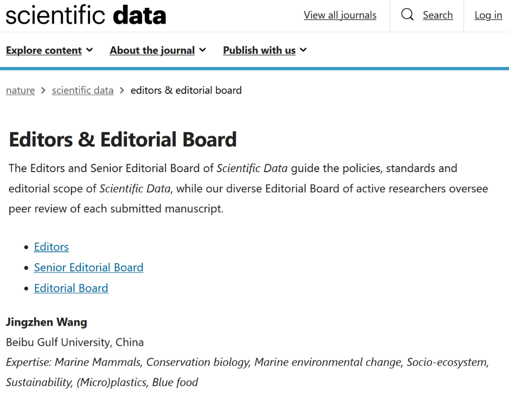 近日,pp电子海洋学院王京真教授,应Nature数据期刊Scientific Data邀请,担任该刊编委(Editorial Board)。Scientific Data作为Nature系列的旗舰数据期刊,于2014年12月创建,是世界上最早的科学数据期刊之一,为自然科学、医学、工程和社会科学领域提供数据发表的服务,Web of Science最新数据显示5年影响因子10.8,JCR分区位于Q1,2023年影响因子为9.8。王京真表示,将以此为契机,促进湾大与同行学术交流合作,不断提高科研能力和创新能力,...