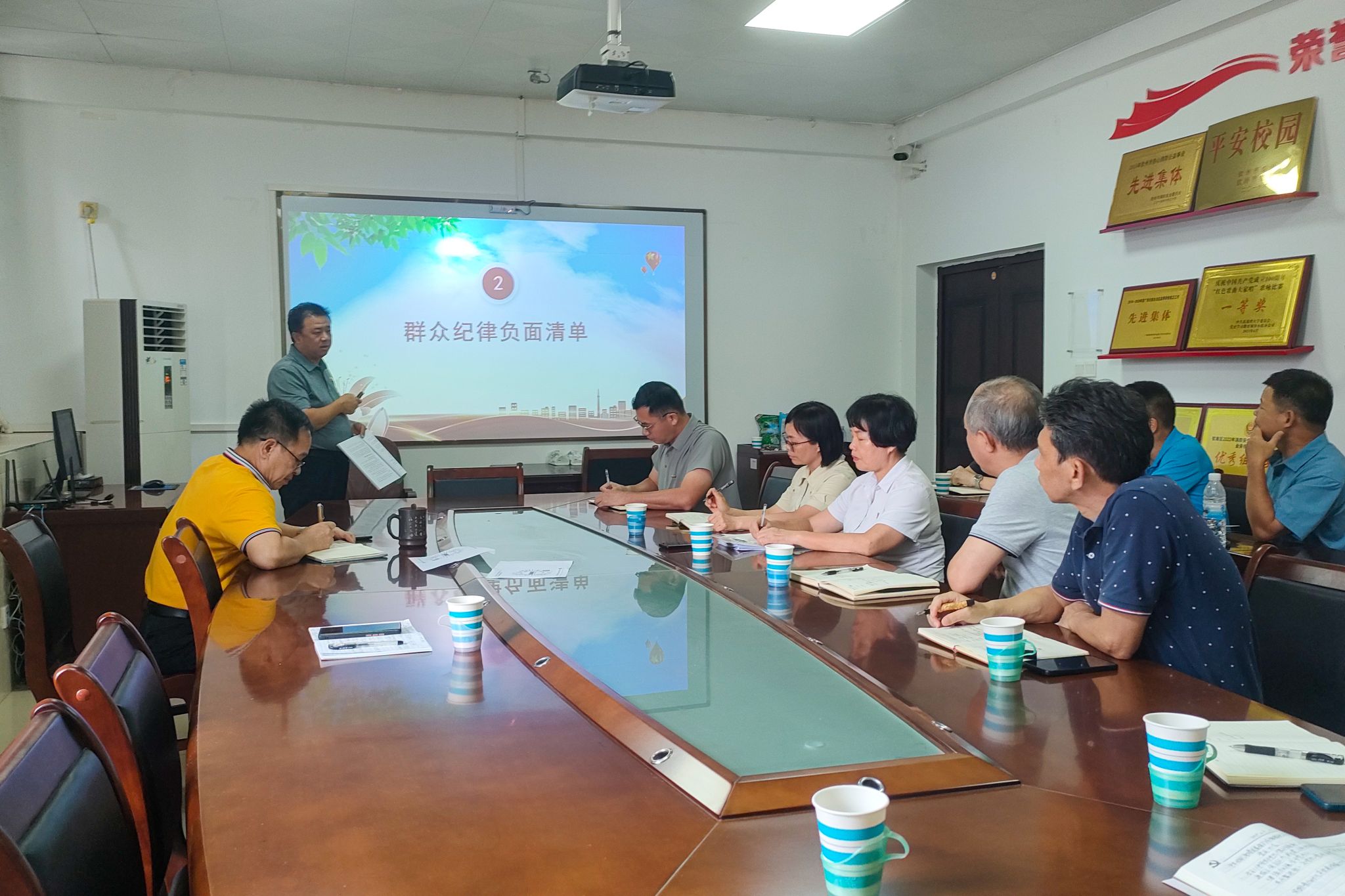 6月13日,校党委常委、副校长闫松银在办公楼159会议室为武装保卫工会继教院党支部全体党员讲授专题党课。闫松银从群众纪律的概念、违反群众纪律的16项负面清单和如何严守群众纪律等三个方面分享了《中国共产党纪律处分条例》中“群众纪律”相关内容的学习心得。闫松银指出,全体党员要深入学习领会廉洁纪律、群众纪律的核心要义、规范要求,真正把纪律规矩转化为政治自觉、思想自觉、行动自觉;要始终做到政治坚定,深刻认识严守廉洁纪律群众纪律的重要意义,...