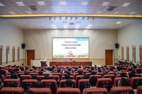 6月27日下午,学校在12号教学楼204报告厅召开广西科技计划项目和广西哲学社会科学研究课题申报工作布置会。校党委常委、副校长陈丹出席会议。会上,科技处处长许尤厚介绍了近两年项目申报与立项情况,对2025年度广西科技计划项目及2024年度广西哲学社会科学研究课题申报进行政策解读和具体安排。陈丹要求,各学院要高度重视,周密部署、整合资源、打造团队、深挖潜力,积极邀请本专业领域的专家进行指导,不断提高申报内容的质量;教师们要熟读指南和申报要求,...