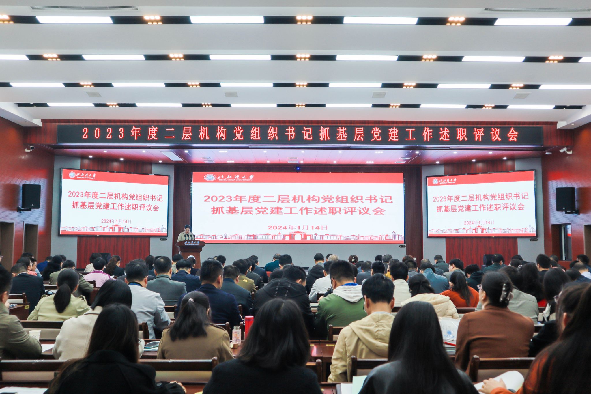 1月13日,2023年度二层机构党组织书记抓基层党建工作述职评议会在办公楼一楼报告厅举行。校党委副书记、校长苗剑出席会议并点评。校党委副书记陈磊主持会议。评议现场,10位二层机构党组织书记紧紧围绕基层党组织政治建设,落实基层党建责任制、党建重点任务、抓党建促改革发展、意识形态工作第一责任人、党风廉政建设第一责任人、以及推动上年度述职评议考核整改清单落实情况和各级巡视、巡察反馈中涉及基层党建工作问题整改情况进行了现场述职。...