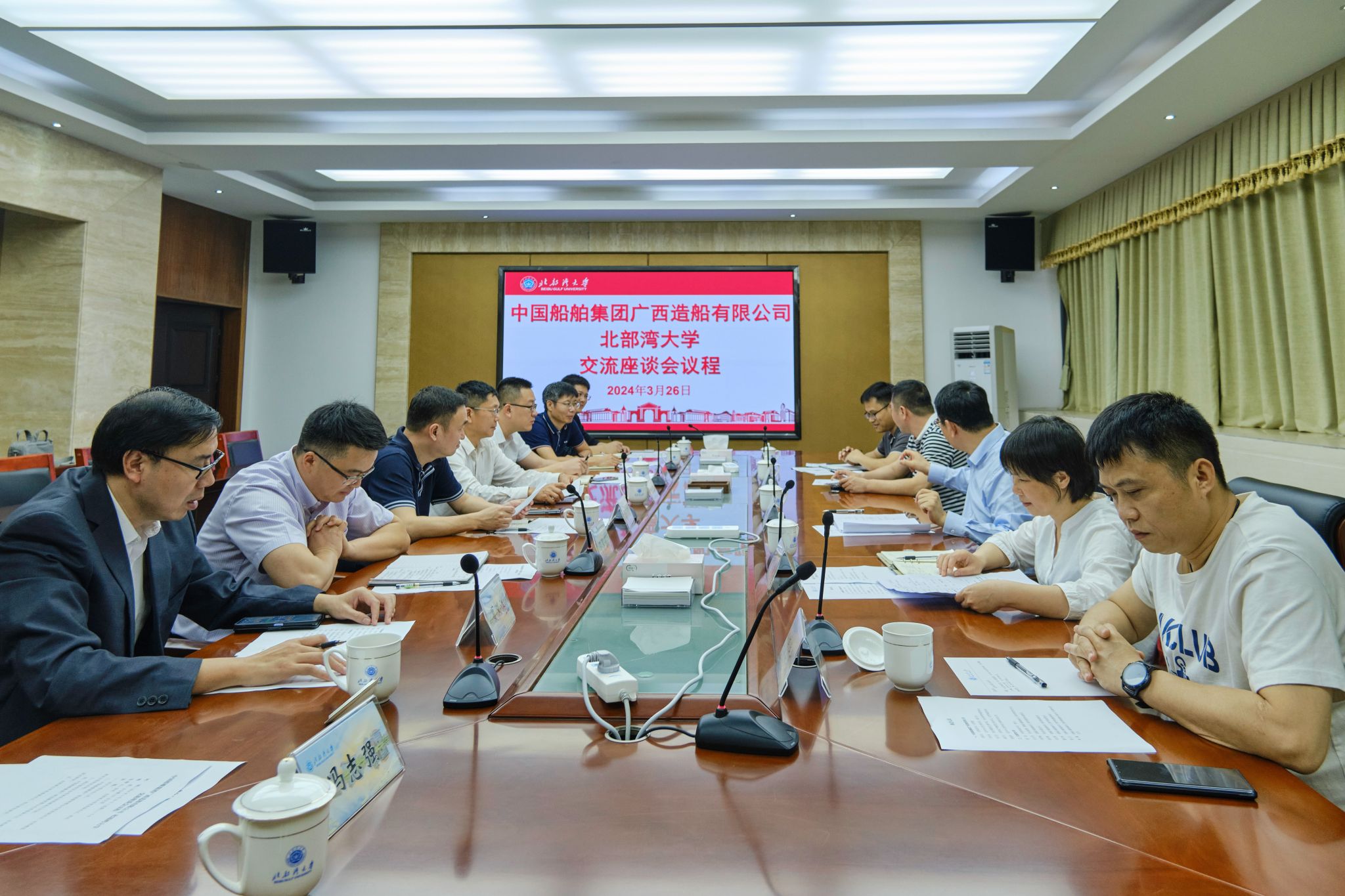 3月26日下午,中国船舶集团广西造船有限公司党委副书记、总经理张新龙一行5人到校调研交流。校党委副书记、校长苗剑出席座谈会。苗剑对张新龙一行到来表示热烈欢迎,并介绍了学校的基本情况。苗剑表示,学校始终以海洋性办学特色为主,以服务海洋强国和海洋强区战略为使命推进学科建设。他希望校企双方进一步建立沟通交流机制,充分发挥湾大涉海优势学科的作用,推动资源互补,在产教融合协同育人、科研攻关和科技成果转化等多个领域开展更深入的合作,...