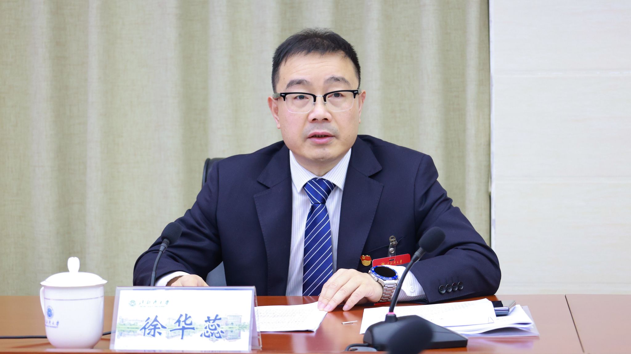 3月25日,学校在办公楼523会议室举行党委理论学习中心组2024年第一次集中学习会议。校党委书记徐华蕊主持。校党委理论学习中心组全体成员参会。徐华蕊领学了习近平总书记在全国两会期间的重要讲话精神。他强调,学校各单位各部门要深刻领会2024年全国两会的重要意义,认真把握2024年全国两会的新亮点、新理念,认真抓好两会精神的学习贯彻,提升学校服务新质生产力发展的能力。徐华蕊指出,要提高政治站位,深刻领会两会精神,深刻理解把握习近平总书记关于“...