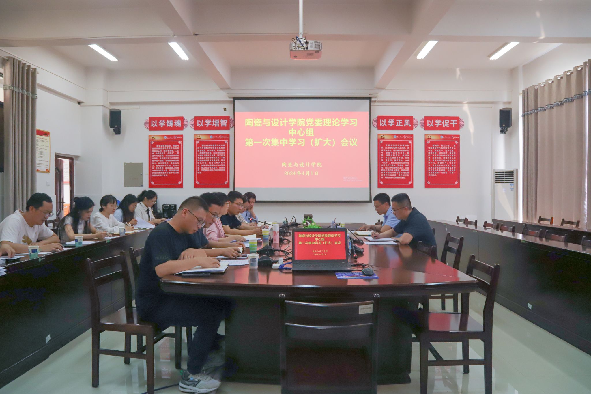 4月1日下午,校党委副书记陈磊到陶瓷与设计学院巡听旁听学院党委理论学习中心组学习(扩大)会议并就宣传、学生、团委工作进行调研。学院党委理论学习中心组成员、辅导员、教师代表参加理论学习。会议专题学习了习近平总书记在全国两会期间的重要讲话精神,传达学习了学校党委理论学习中心组2024年第一次集中学习会议精神。学院党委理论学习中心组成员古雅峰、关冰、周兴海依次作重点发言,詹瑞虹、邹蔓燕、钟萍等作自由发言。陈磊对本次学习研讨效果和学院工作成效予以充分肯定。...