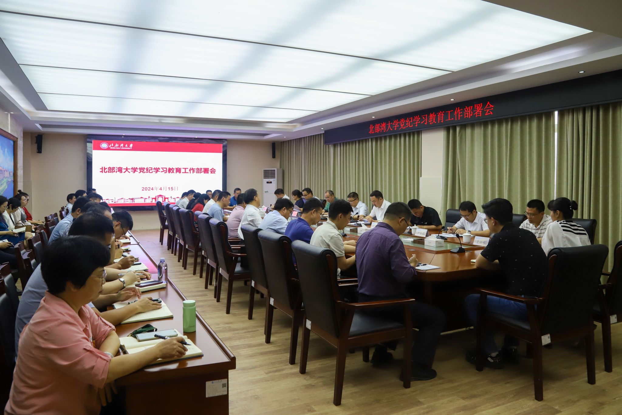 4月15日,学校在办公楼523会议室召开党纪学习教育工作部署会。校党委书记徐华蕊就全校开展党纪学习教育作出全面安排和部署。校党委副书记、校长苗剑主持。徐华蕊指出,开展党纪学习教育是坚定理想信念、筑牢思想防线的必然要求,是提升党性修养、增强纪律意识的迫切要求,是推动学校事业发展、营造良好政治生态的重要要求。全校各级党组织和党员干部要提高政治站位,深入理解把握党纪学习教育的重大意义,切实把思想和行动统一到党中央决策部署和自治区党委工作要求上来,...