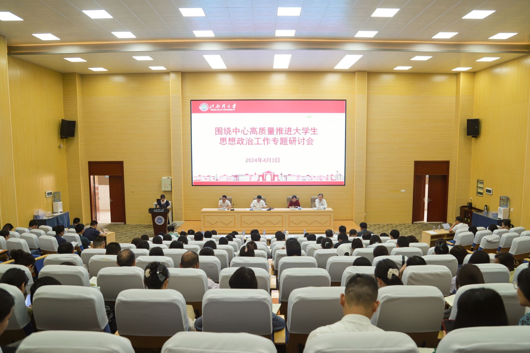 4月3日,学校在12号教学楼210报告厅召开围绕中心高质量推进大学生思想政治工作专题研讨会。校党委副书记陈磊出席会议。会上,海洋学院,建工学院,经管学院,海运学院,宣传部,党委学生工作部、学生工作处,团委,教务处,马院主要负责人、辅导员代表依次结合自身工作,立足学校实际,围绕工作痛点、难点、堵点,以人才培养质量提升为中心,报告了相关工作的发展思路和具体安排。陈磊认为,长期以来,学校宣传思想和思想政治工作系统聚焦立德树人根本任务奋力前行,...