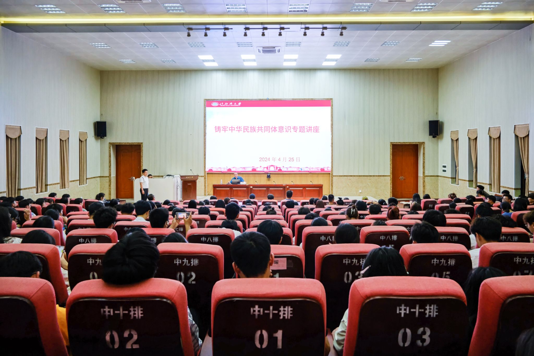 4月25日晚上,铸牢中华民族共同体意识专题讲座在12号教学楼204报告厅举行,校党委副书记唐高华作专题讲授。统战部、学工部(处)、团委、马克思主义学院相关负责人及各学院学生代表参加。讲座上,唐高华从“我国民族概念及基本情况、民族工作的发展沿革、铸牢中华民族共同体意识的意义和内涵、铸牢中华民族共同体意识的路径分析、当代青年如何推动民族进步”等五个方面进行展开阐述。讲座史论结合,情理交融,以事例讲政策、以故事讲团结,...