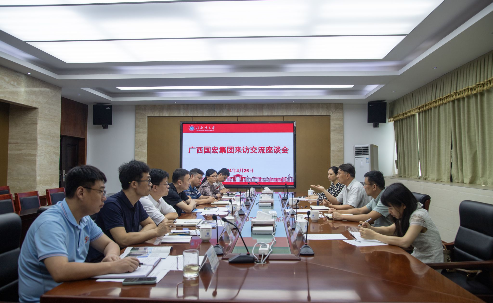 4月26日,广西国宏经济发展集团有限公司党委副书记、总经理陈海波一行到访pp电子。校党委副书记、校长苗剑出席座谈会。陈海波希望通过此次调研活动,能够与pp模拟器游戏官网入口建立起更加紧密的合作关系,共同推动双方在相关领域的研究与实践取得更大突破。苗剑表示,将积极回应国宏集团的发展需求,充分发挥学校在科研、人才等方面的优势,加强与国宏经济发展集团的合作与交流,推动产学研深度融合,为广西经济社会发展作出更大贡献。双方还就资本运营和资产管理等主题进行了深入探讨。...