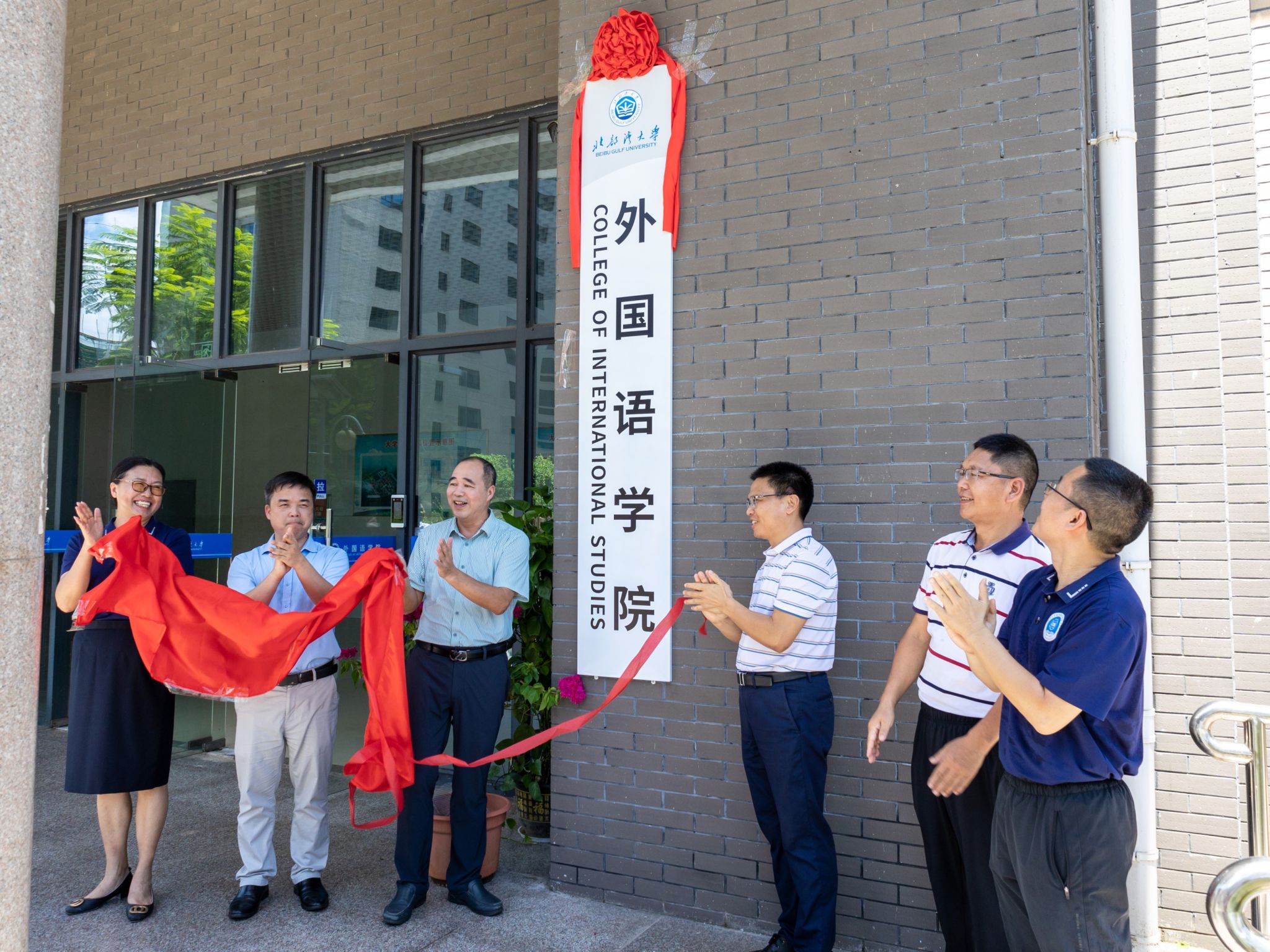 7月8日上午,pp电子外国语学院揭牌仪式在大学生创业园举行。校党委副书记唐高华,校党委常委、宣传部部长裴以明,校长助理、校友办主任任才茂,党校办主任黎树式、外国语学院党委书记潘文昊和外国语学院院长冯丽共同为外国语学院揭牌。潘文昊主持揭牌仪式。唐高华指出,外国语学院的成立是学校国际化发展的重要组成部分,是提升学校整体教育教学质量的重要举措。外国语学院的成立,将进一步优化学校学科布局,提高国际化办学水平,促进外语类专业的稳步发展。...