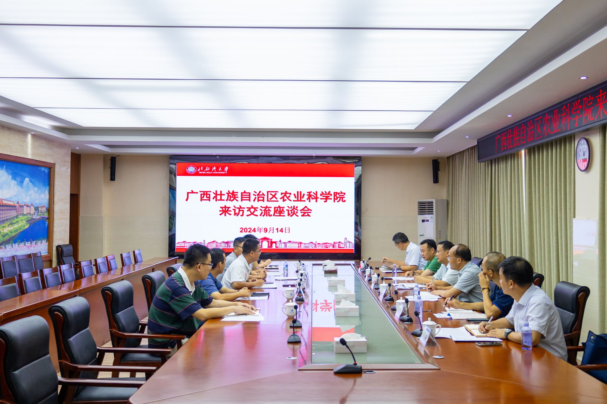 9月14日,自治区农业科学院党组成员、副院长陆宇明一行到pp电子就调研交流。校党委副书记陈磊会见了调研组一行,校党委常委、副校长梁智出席会议调研交流会。会上,与会双方对本单位近年来的改革发展、科学研究、队伍建设、基建项目建设等方面进行了深入交流,双方充分肯定了校院双方科研团队开展科技合作取得的显著成效,并达成了深化教育、科技、人才交流与合作的共识。党办校办、宣传部、科技处、财务处、基建处相关负责人参加交流活动。...