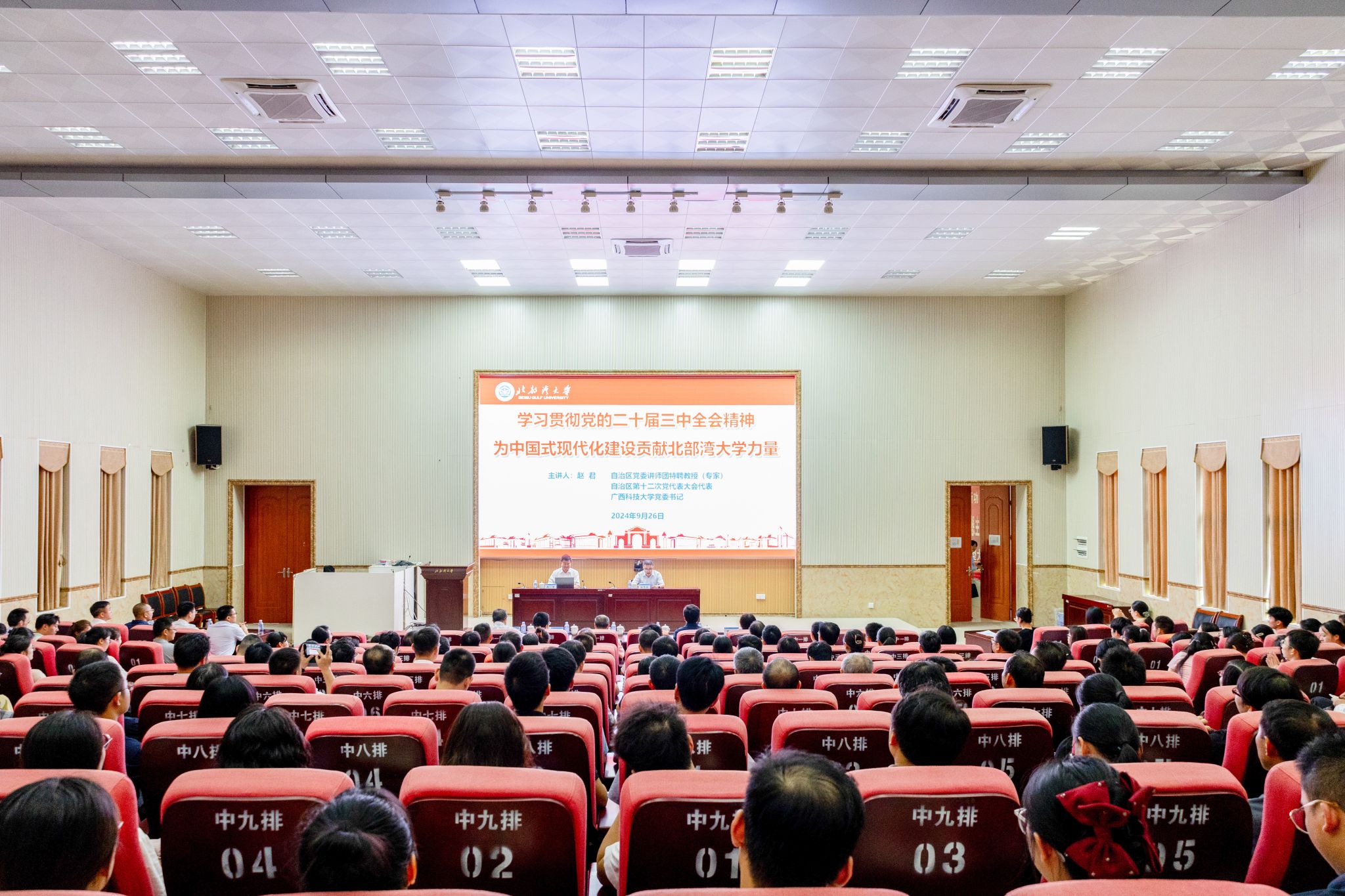 9月26日,学习贯彻党的二十届三中全会精神自治区党委讲师团特聘教授(专家)宣讲报告会暨学校党委理论学习中心组第五次集中学习(扩大)会议在pp电子12栋教学楼204报告厅举行。自治区党委讲师团特聘教授(专家)、自治区第十二次党代会代表、广西科技大学党委书记赵君作宣讲报告。校党委书记徐华蕊主持会议。报告会上,赵君以《学习贯彻党的二十届三中全会精神 为中国式现代化建设贡献pp模拟器游戏官网入口力量》为题,从全会召开的重大意义、习近平总书记重要讲话精神、...
