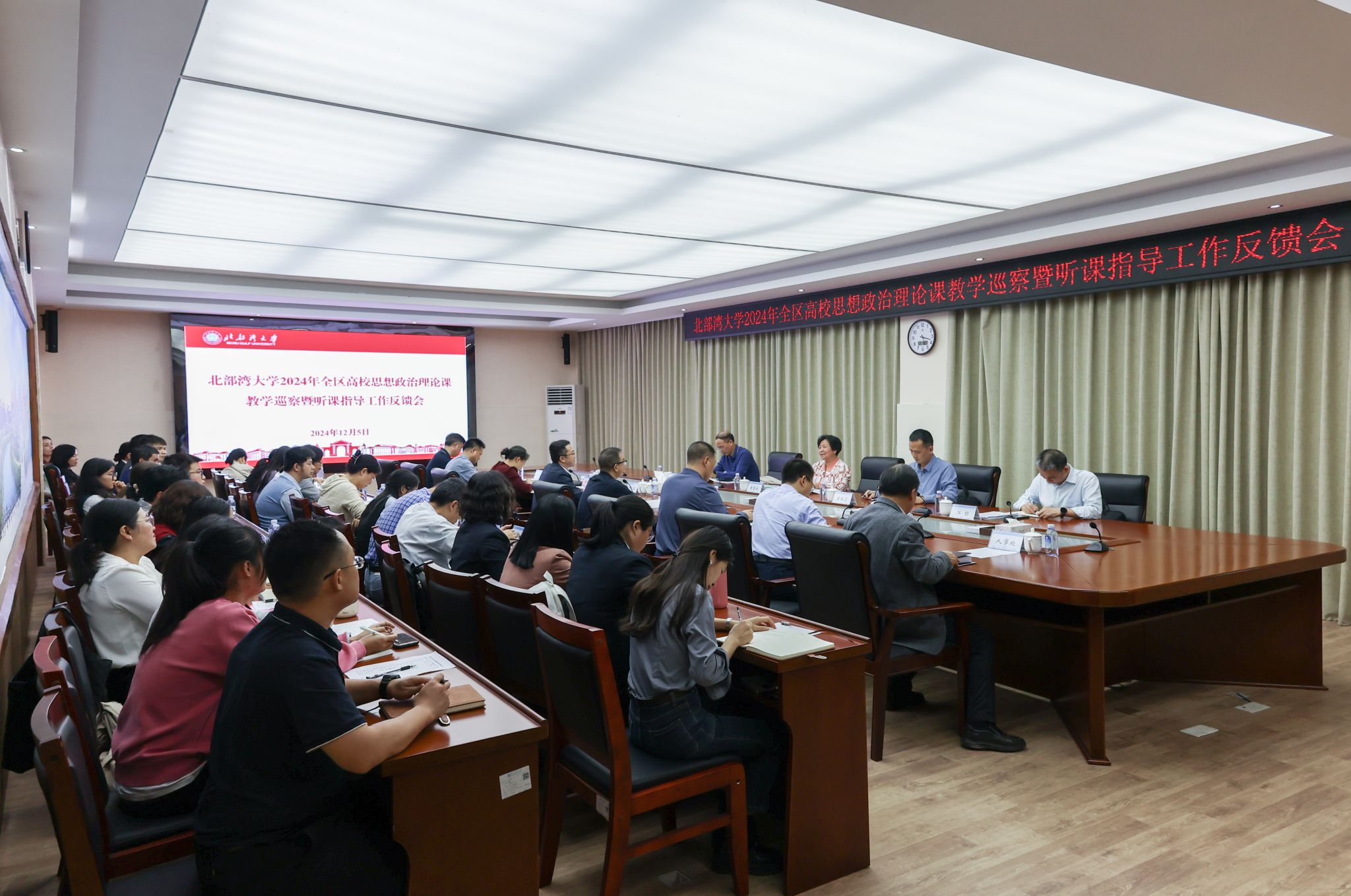 12月5日,全区高校思想政治理论课教学巡察组专家、广西中医药大学原副厅级调研员陈雪斌教授一行4人到pp电子进行2024年全区高校思想政治理论课教学巡察暨听课指导工作。学校在办公楼523会议室召开专题汇报会和反馈会。学校党委书记徐华蕊、党委副书记陈磊出席。陈磊主持会议。专题汇报会上,徐华蕊对巡察组专家一行到学校巡察指导表示热烈欢迎和衷心感谢,介绍了学校的基本情况。他表示,学校高度重视思想政治理论课建设,认真贯彻落实习近平总书记对学校思想政治理论课建设作出的重要指示精神,...
