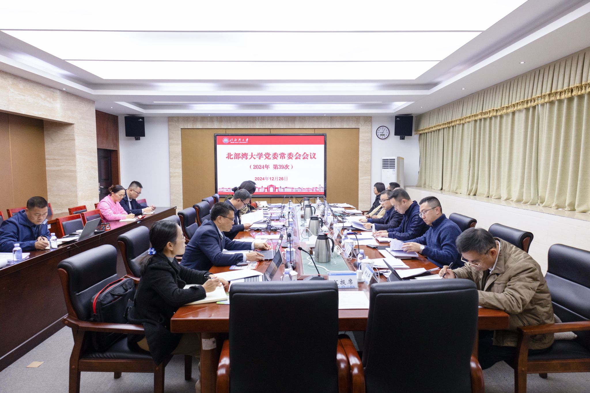 1月6日,学校在办公楼327会议室召开党委常委会,学习习近平总书记二〇二五年新年贺词。校党委书记徐华蕊主持会议并领学。相关职能部门负责人列席会议。会议指出,要深入学习贯彻习近平总书记新年贺词精神,汲取奋进力量,当好高质量发展“主角”,锚定建设海洋特色鲜明的高水平应用型大学的目标,强化“海洋性、应用型、国际化”办学特色,绘就学校高质量发展新画卷,解放思想、创新求变,向海图强、开放发展,为奋力谱写中国式现代化广西篇章贡献湾大力量。...