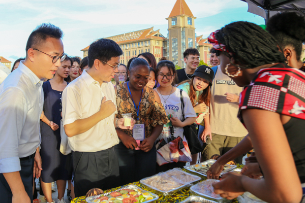 6月16日,以“青春无国界,湾大汇英才”为主题的学校第二届国际文化节在中心广场开幕。校党委书记韩峻峰,校党委常委、副校长唐高华、陈磊,党委常委、党委宣传部部长马秀明出席开幕式,国际教育与外国语学院院长、国际交流处处长、港澳台事务办公室主任冯丽主持。钦州市出入境管理局、沙埠镇派出所相关领导参加开幕式。唐高华致开幕辞,他表示,此次文化节旨在为中外学生提供交流平台,让来自不同国家的留学生们展现自己国家独...