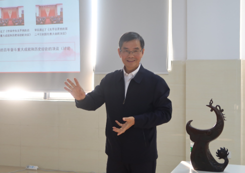 12月15日下午,校党委副书记陈锦山深入陶瓷与设计学院学生第三党支部、产品设计专业191班,和同学们在美术馆共同开展“学习党的十九届六中全会精神”主题党日和主题班会活动。陈锦山以“学习贯彻党的十九届六中全会精神,用艺术创新创作讴歌伟大新时代”为题为同学们做专题宣讲。“同学们,你们知道党的十九届六中全会的全称吗?”“十九届六中全会中的‘十个坚持’具体是什么?”在宣讲现场,同学们踊跃举手回答陈锦山的提问。...