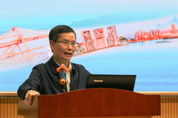 报告会由九三学社钦州高校支社社员、pp模拟器游戏官网入口海洋学院院长许尤厚主持。(蒙恺妮 黄一鸣 费雁弘 施艳婷 摄)