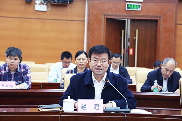 赵君介绍了此行的目的。他说,学校要深入贯彻落实十九届五中全会、向海经济会议精神,大胆写好社会服务“自荐书”。他表示,学校将充分发挥高校优势,密切与临海港口城市的合作,积极探索校企政协同创新模式,提升学校服务向海经济发展能力,为海洋强国建设战略贡献湾大力量。