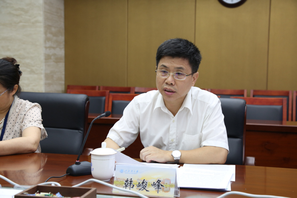 在办公楼327会议室,韩峻峰对张新柱一行的来访表示热烈欢迎。韩峻峰介绍了学校基本情况、办学经验以及“十四五”规划研制思路。他希望加强交流与学习,进一步促进双方在多领域合作中实现共同发展。