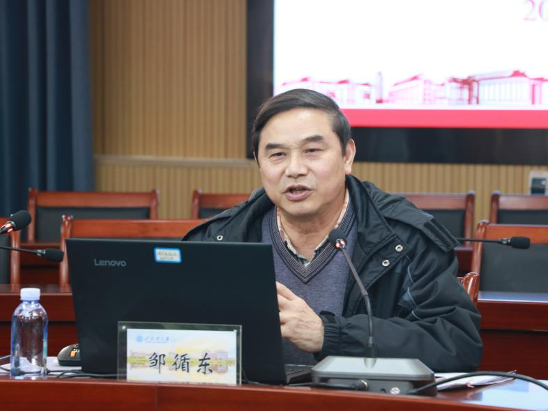 会上,邹循东教授做了《与同行们聊专业型硕士的办学》的专题报告。他指出,教育硕士办学要围绕“人、财、物、教、研”等五字要义开展,为pp电子教育硕士专业学位点建设工作指明了方向,理清了思路。他还现场对与会人员在教育硕士办学的问题和困惑进行了耐心细致的指导。