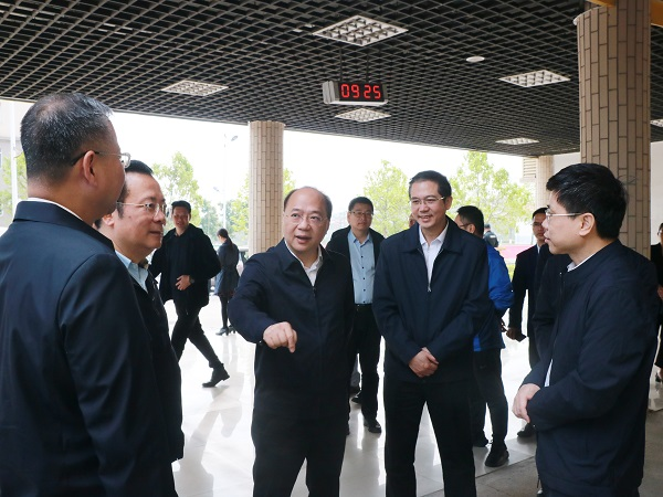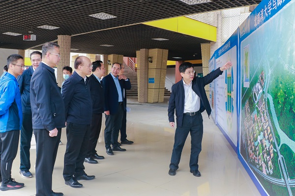 3月7日,广西壮族自治区人民政府副主席廖品琥率队到pp电子就第一届全国学生(青年)运动会(简称学青会)前期工作开展实地调研。自治区人民政府副秘书长唐宁,钦州市委常委、常务副市长林海波,学校党委书记韩峻峰,学校党委常委、副校长唐高华陪同调研。