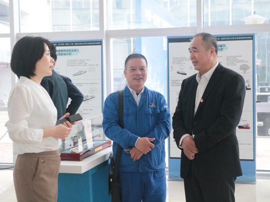 唐高华(右一)参观中国—东盟(广西)船舶与海洋工程中高级技能实训基地培训中心