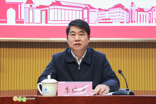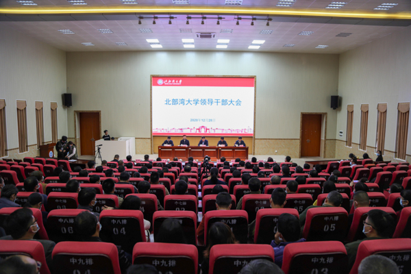 自治区党委组织部干部五处副处长程任庭,自治区党委教育工委组织部部长唐春燕,学校全体校领导、全体中层干部参加了会议。(陈洪智 曹允谦 摄)