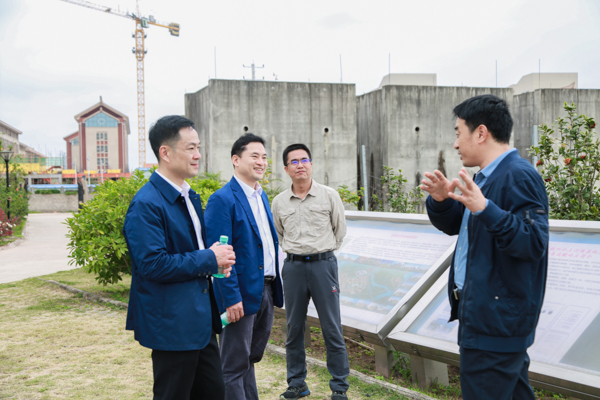 韦国献副处长(左中)实地调研平陆运河pp模拟器游戏官网入口西门码头,陈湘如副书记(左一)、梁智总会计师(左三)陪同调研