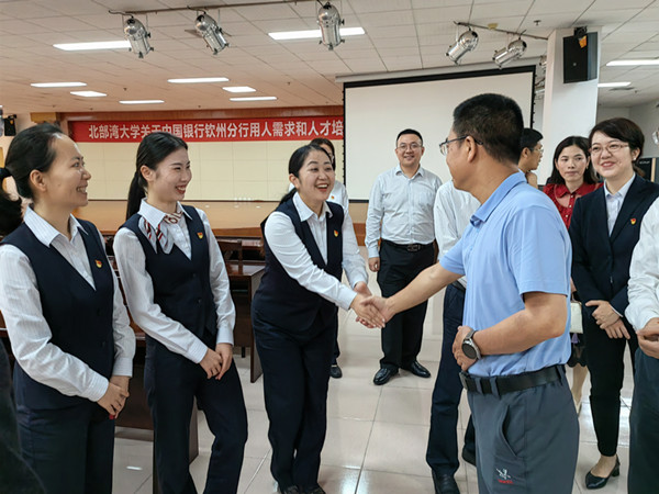调研会上,梁智详细介绍了学校的办学特色、发展重点以及此次调研的目的,并对企业在学校发展过程中给予的大力支持表示感谢。他希望能以此次调研为契机,为企业和高校之间搭建更多对接沟通平台,在专业人才培养、党支部共建等方面拓展更多形式,一起为北部湾地区金融行业发展做出更大的贡献。
