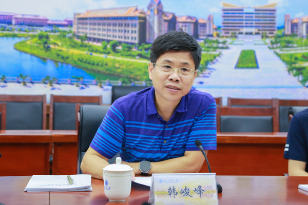 韩峻峰对梧州学院一行的到来表示热烈欢迎并介绍了学校的基本情况和办学特色,以及学校硕士学位点申报的工作举措以及整改、完善申报材料的经验做法,他希望双方借此机会共商合作、共谋发展,不断拓展校校合作的深度和广度,共同促进区域经济的发展。