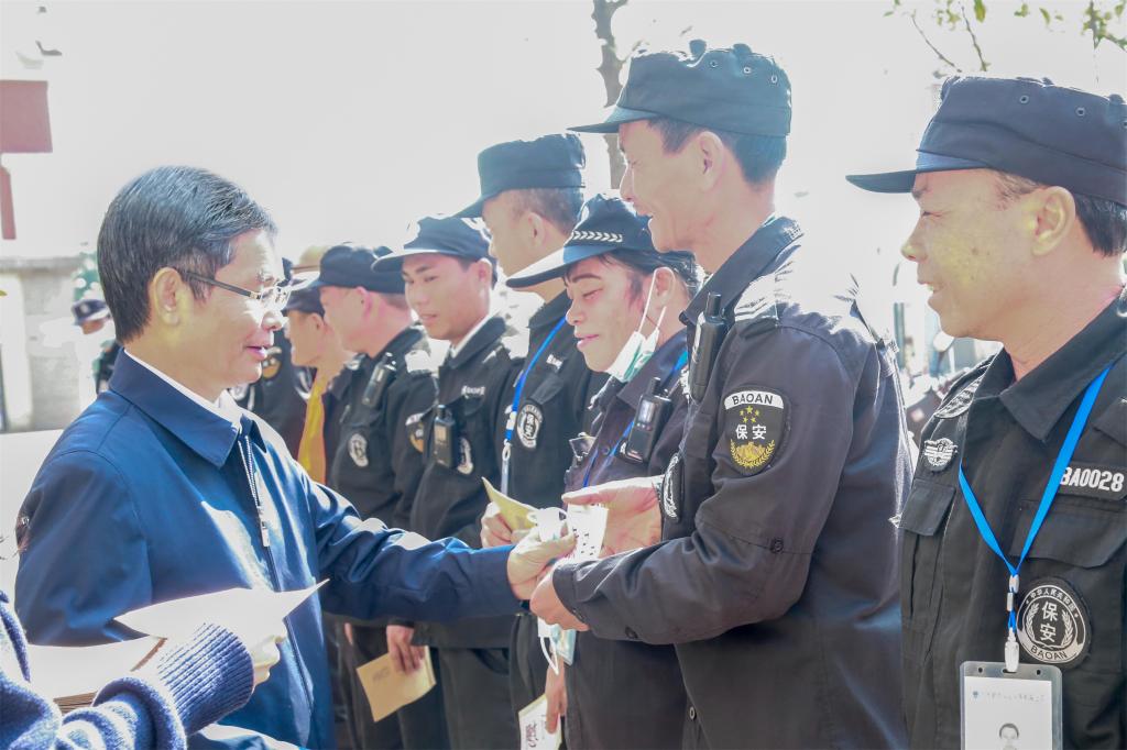 陈锦山向安保人员送上新年祝福