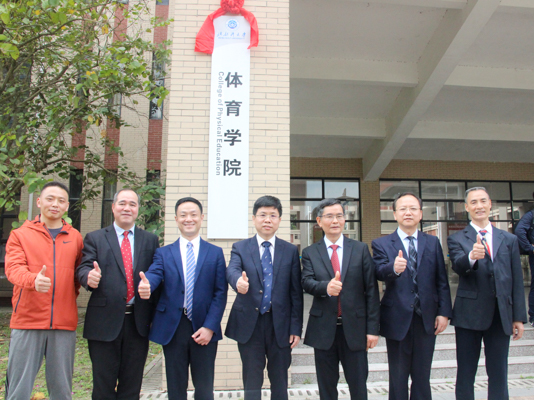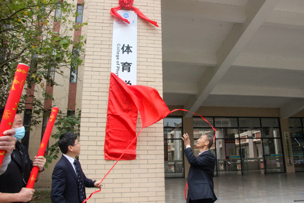 韩峻峰书记、李乃琼院长共同为体育学院揭牌