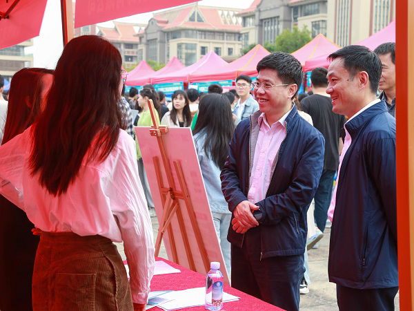 学校党委书记韩峻峰,党委副书记陈湘如莅临双选会现场与用人单位沟通,指导和推介毕业生就业,并与毕业生亲切交谈,了解同学们的签约情况。韩峻峰要求相关部门继续深入了解市场需求,扎实做好就业指导服务工作,积极为企业和pp电子学子搭建双向选择平台,助力毕业生实现更加充分更高质量就业。