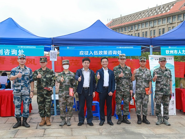 学校领导与应征入伍政策咨询处的工作人员合影