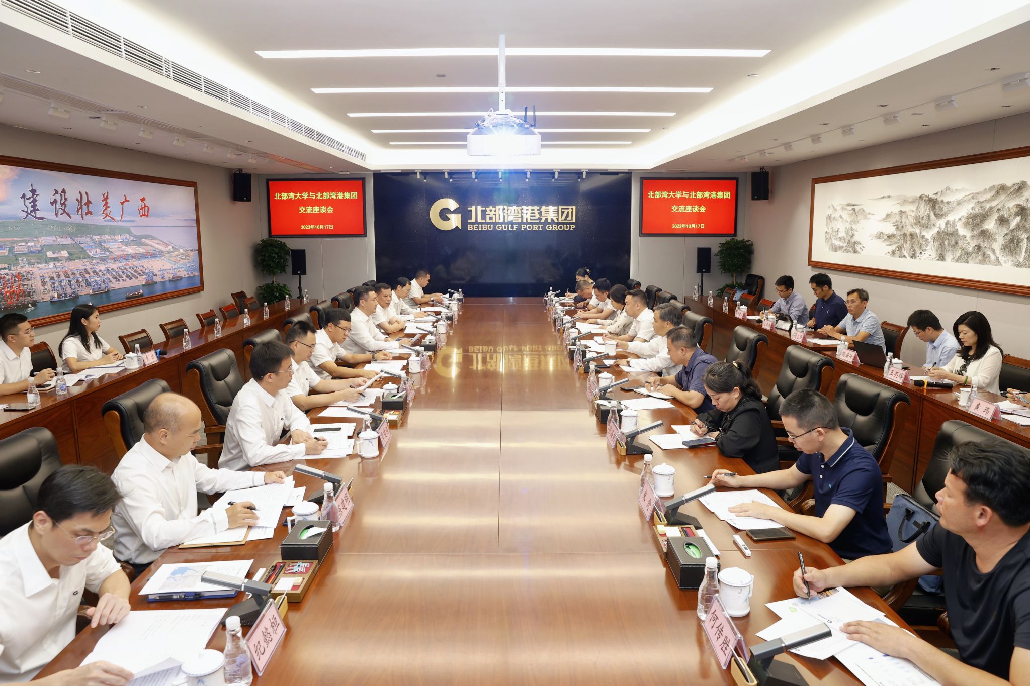 10月17日,学校党委副书记、校长苗剑,校党委常委、副校长陈丹、闫松银率队汇同广西大学党委常委、副校长肖建庄到北部湾港集团拜访交流,北部湾港集团党委副书记、副董事长、总经理刘胜友等热情接待。双方就深化开展校企战略合作等工作进行广泛交流。