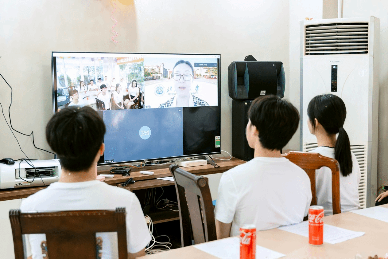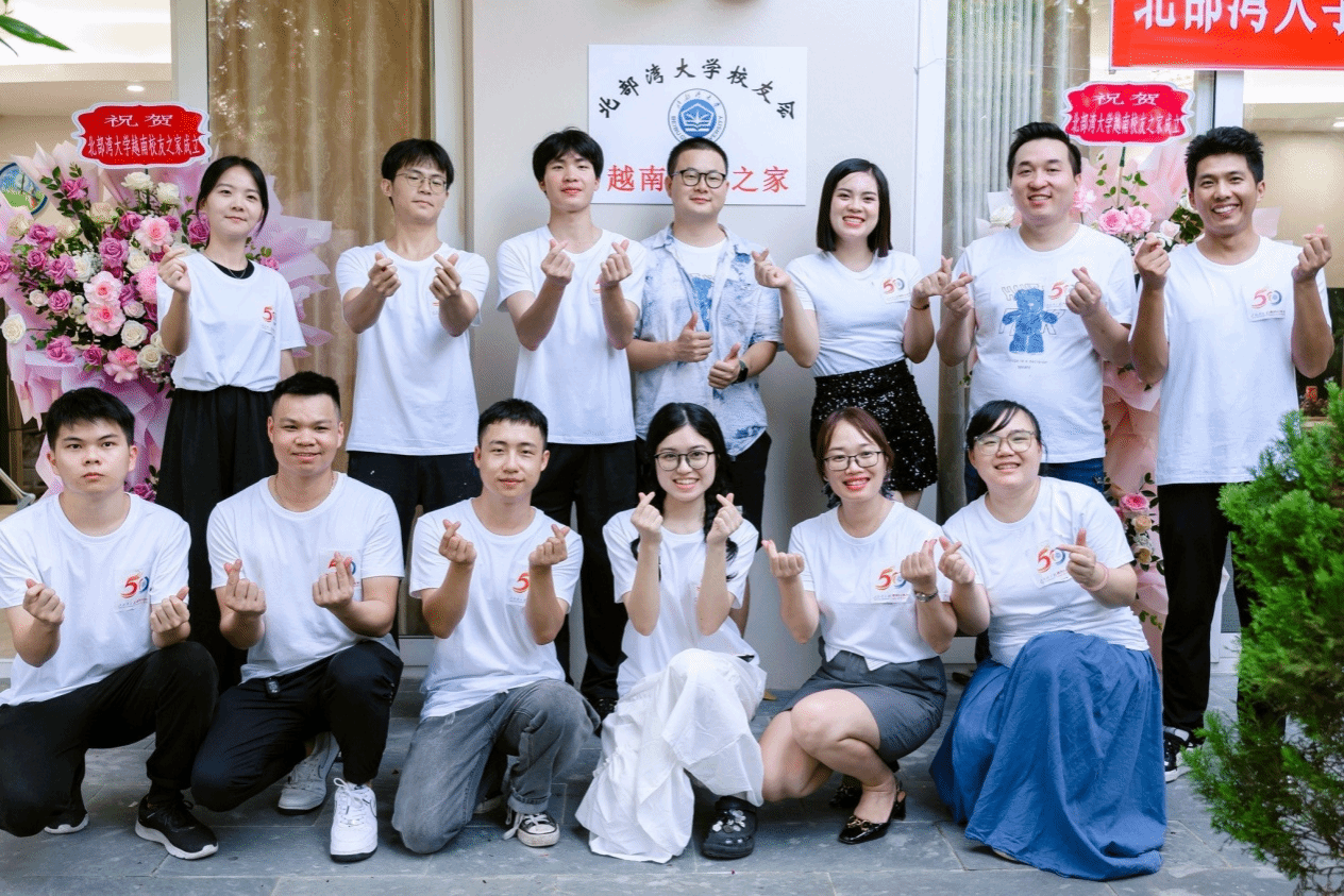 随后,国际教育与外国语学院教师颜彦与校友们共同为越南校友之家揭牌。一时间,礼花绽放、掌声雷动。