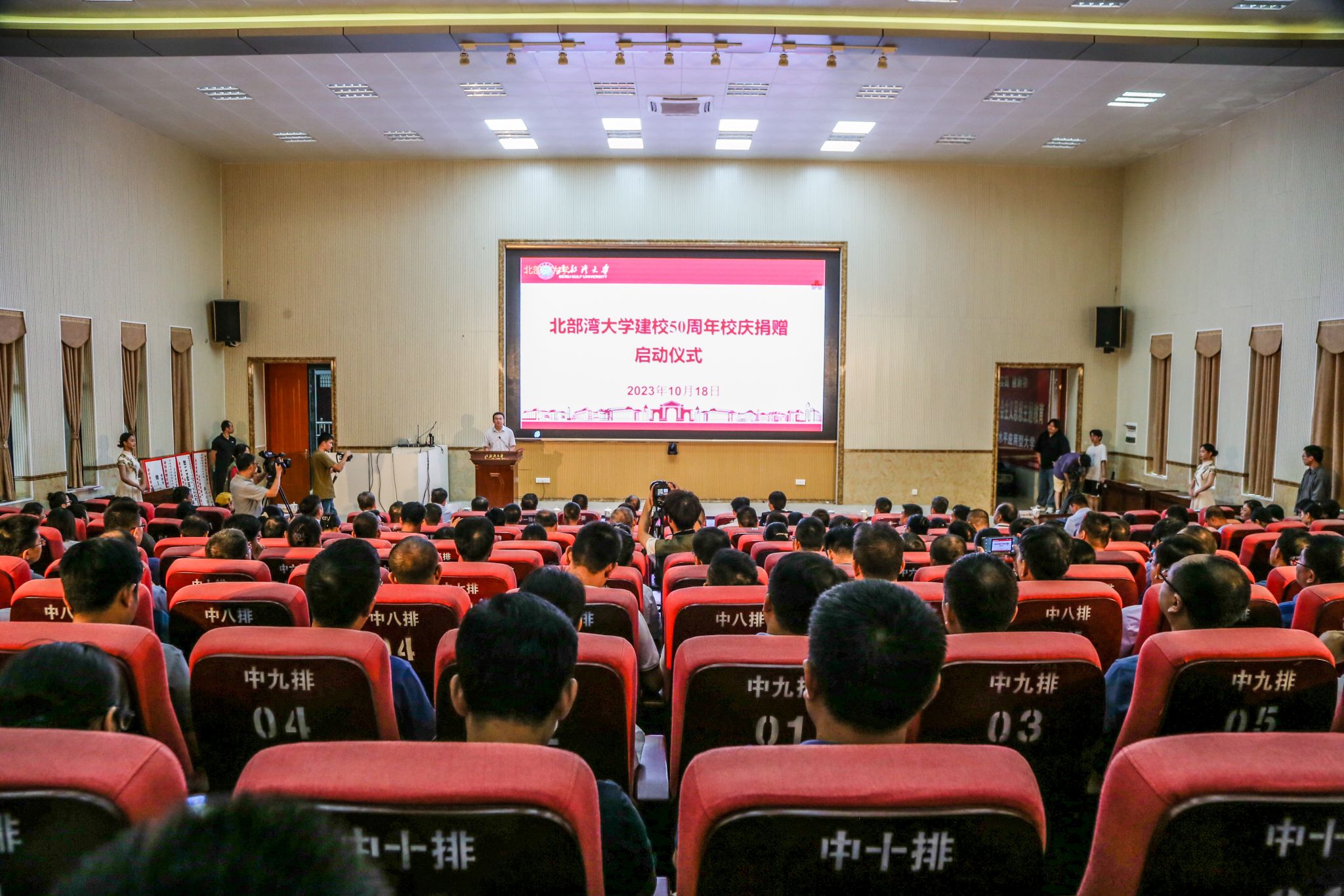 10月18日上午,pp电子建校50周年校庆捐赠启动仪式在12号教学楼204报告厅举行。pp电子校友代表、各地校友会代表、合作企业和爱心人士代表,以及全体在家校领导出席仪式。仪式由校党委副书记陈磊主持。