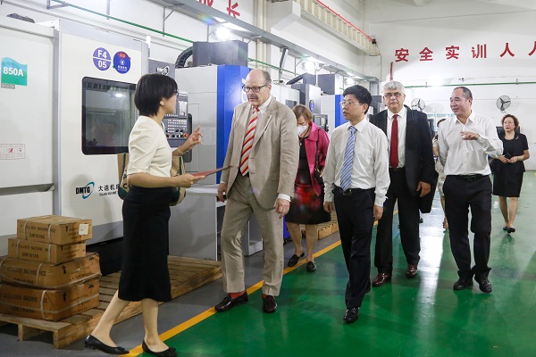 Smith校长(左二)一行参观走访学校工程训练中心