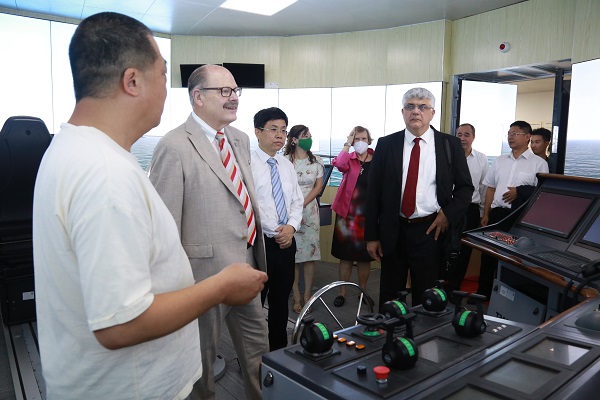 Smith校长(右二)一行参观学校海运学院航海模拟实验中心