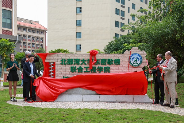 双方领导嘉宾一同为联合工程学院标志性建筑揭牌