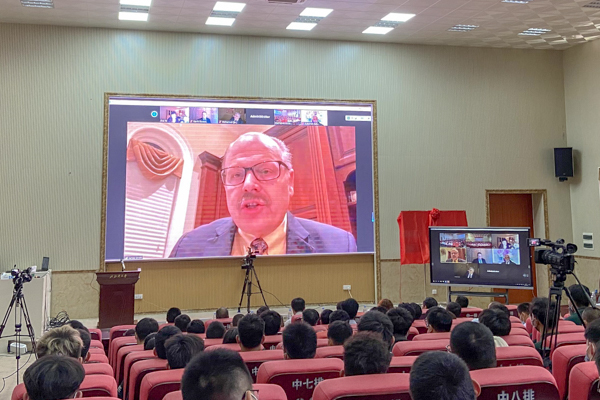 揭牌仪式后,联合工程学院继续连线美国东密歇根大学,组织召开了别开生面的线上新生见面会。(周晟旻 莫文晶 摄)