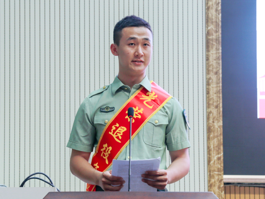 陈湘如代表学校对2022年度光荣退役返校的45名同学表示欢迎和感谢。他希望同学们珍惜军旅生活的荣誉,发扬军人“特别能吃苦、特别能战斗、特别能奉献、特别守纪律”的精神,用自身的成长经历、价值追求、实践行动为身边的同学做好表率,为国家发展贡献更大力量。