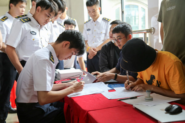 洽谈会前海运学院学子整装待发