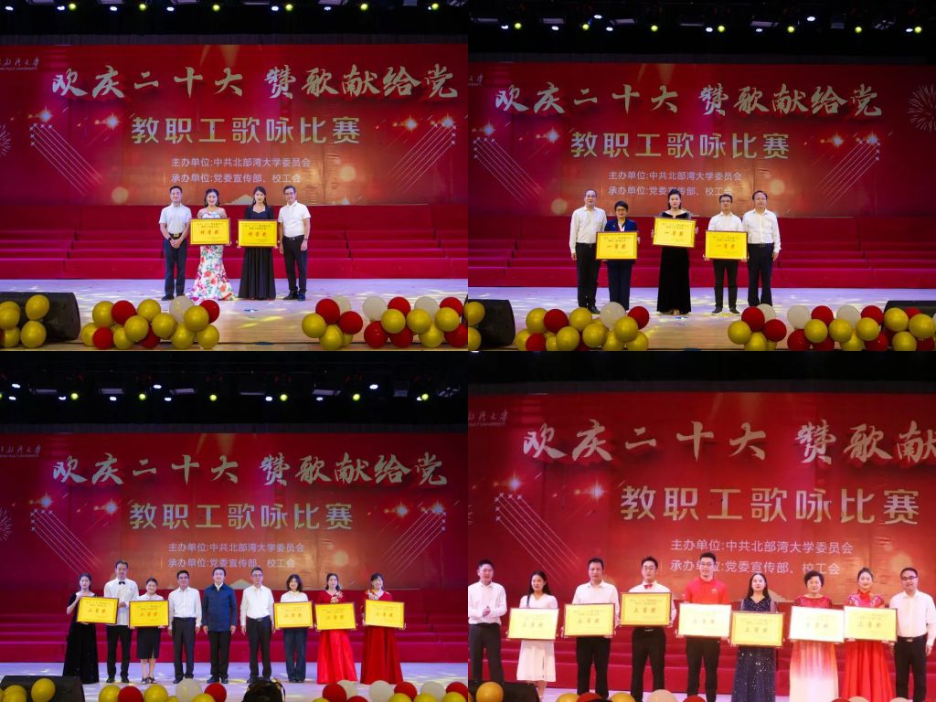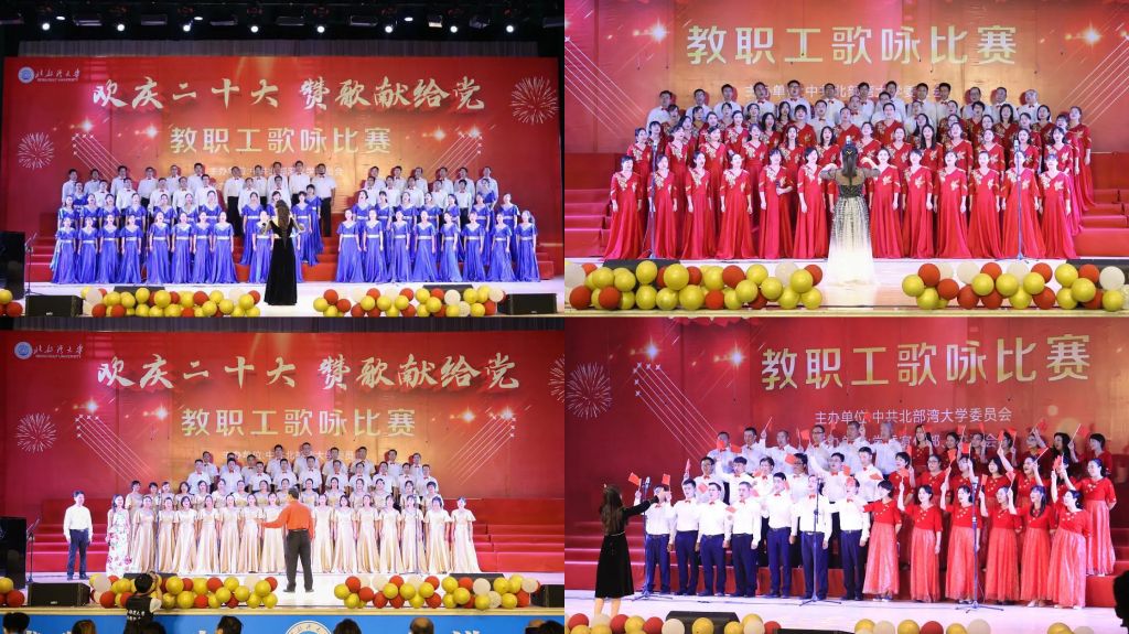比赛在退休教职工合唱团《对花》合唱中拉开帷幕。《团结就是力量》唱出了湾大人攻克困难的决心与信心;《我的中国心》唱出了对祖国母亲的依恋情怀;《歌唱祖国》歌颂了祖国的繁荣昌盛与壮丽山河;湾大附属小学、幼儿园联合队带来的《共筑中国梦》唱出了要在新时代同心共筑中国梦的意志与决心。《我和我的祖国》《祖国不会忘记》《国家》等经典曲目响彻礼堂。言为心声,歌以咏志。教职工们以最自信振奋的精神状态、满腔的激情与高昂的歌声讴歌党的丰功伟绩,唱出湾大人对国家的热爱、对党的赞颂,用红色歌曲凝聚起新时代长征路上的奋进力量,为党的二十大献上最诚挚的祝福。