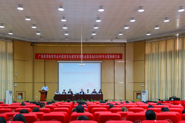 3月18日下午,广西留管学会2020年年会暨表彰大会在学校4号教学楼101报告厅顺利举行。学校党委常委、副校长唐高华,自治区教育厅对外合作与交流处副处长王廷冠出席会议并讲话。大会由全国留管学会副理事长、广西留管学会理事长、广西大学国际学院党委书记、执行院长覃成强主持。