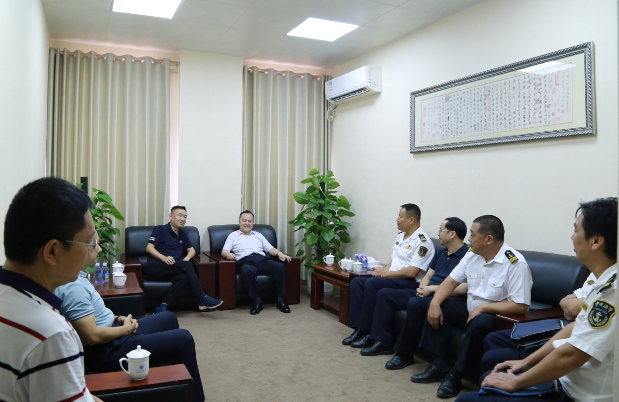 交流中,苗剑对广西海事局长期以来给予学校的大力支持和帮助表示衷心感谢。他希望通过此次交流,进一步强化政校之间的合作,推动学校航海教育和船员培训工作的特色发展,主动融入交通强国战略,突出优质资源引领,构建科研合作项目平台,抢抓平陆运河建设的关键机遇,实现双方共赢共享。