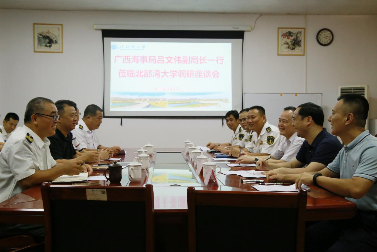 9月5日,广西海事局党组成员、副局长吕文伟一行到学校调研座谈,学校党委副书记、校长苗剑热情接待了吕文伟一行。学校党委常委、副校长闫松银,校办主要负责人、海运学院全体党政领导班子成员以及相关工作人员参加座谈会。