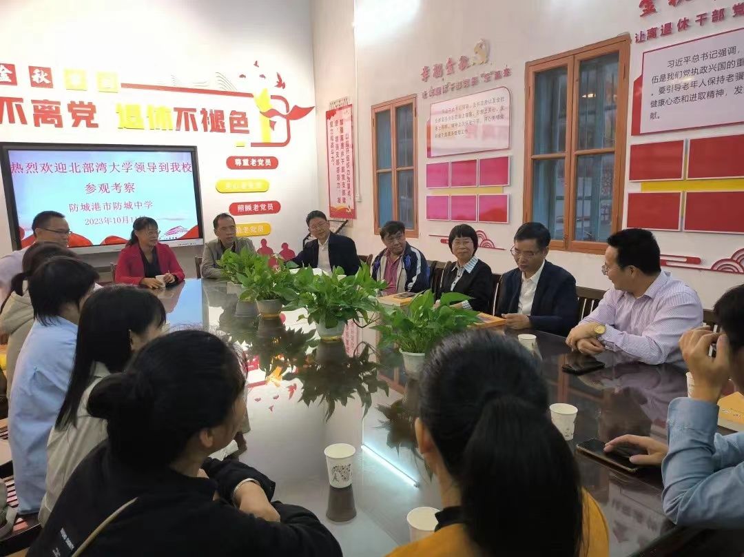 10月17日,学校党委常委、副校长陆衡,原党委副书记陈锦山和党委统战部部长、校长助理任才茂等一行赴防城港市防城中学调研交流。