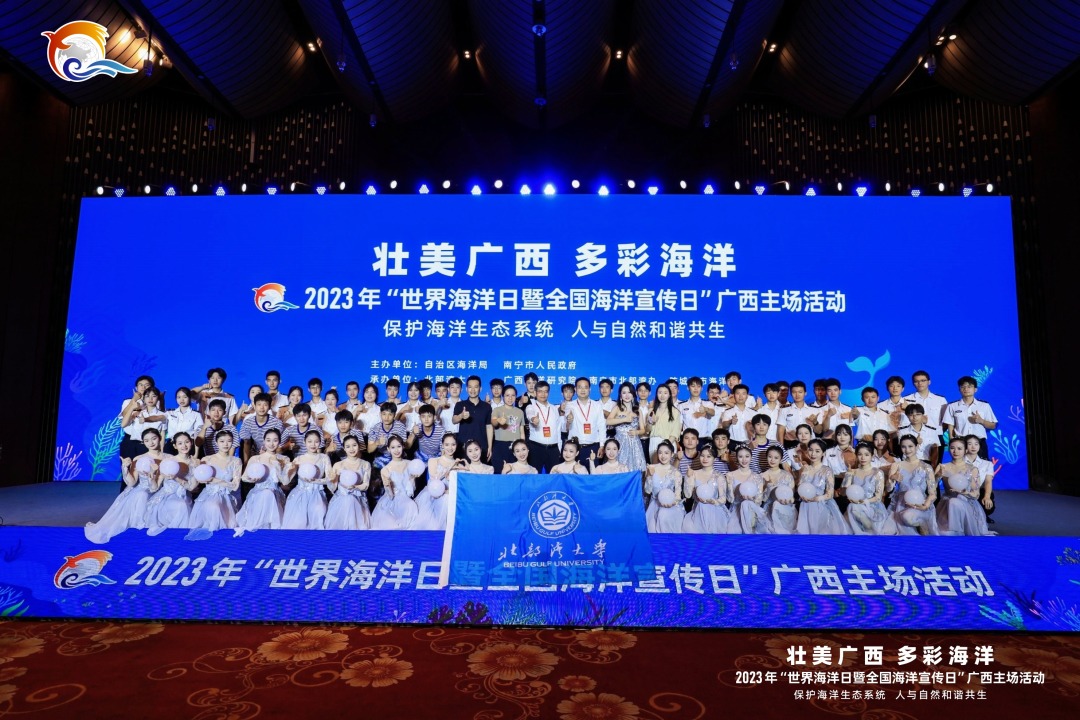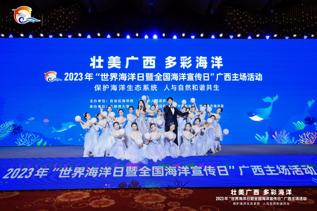 此次活动由自治区海洋局、南宁市人民政府主办,pp模拟器游戏官网入口、广西海洋研究院、南宁市北部湾办、防城港市海洋局共同承办,旨在深入学习贯彻党的二十大精神,宣传贯彻习近平生态文明思想,提升全民海洋意识,推动社会公众保护海洋生态,助力建设海洋强国。pp电子作为承办单位中唯一高校单位,受邀出演开幕式开场与谢幕表演。