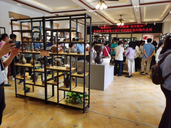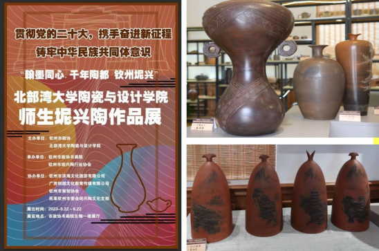 5月22日, “翰墨同心·千年陶都 钦州坭兴”pp模拟器游戏官网入口陶瓷与设计学院师生坭兴陶作品展在市政协书画院顺利开展, 540多件作品将坭兴陶文化、海洋文化、广西少数民族文化、东盟文化元素融入创作,多视角地展示了壮美广西、英雄故里人民群众新时代的精神世界和幸福生活。