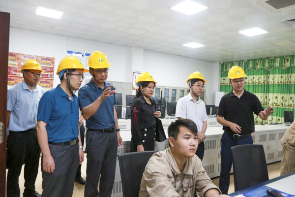 韩峻峰书记(右二)一行参观广西新天德能源有限公司中控室